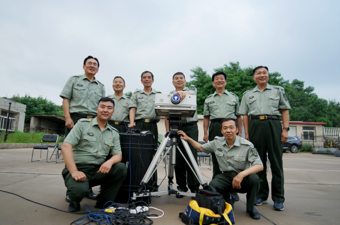2021年7月16日,錦州老兵義務電影放映隊在太和區大許村播放電影時合影。受訪者供圖
