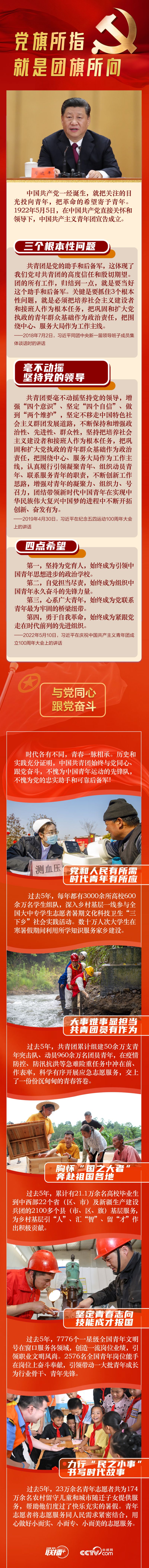 “共青團是黨的助手和后備軍,這體現了我們黨對共青團的高度信任和殷切期望。”站在黨和國家事業薪火相傳的戰略高度,立足黨的事業后繼有人這一根本大計,習近平總書記強調,要加強對青年政治引領,黨旗所指就是團旗所向。