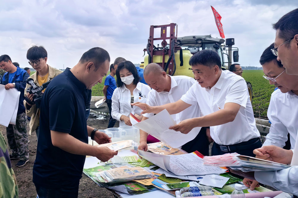 黑龍江省農業農村廳種植業管理處工作人員在哈爾濱市雙城區地頭,向農民發放科學用農藥資料(2023年6月11日攝)。學習貫徹習近平新時代中國特色社會主義思想主題教育工作會議召開以來,黑龍江省農業農村廳種植業管理處將理論學習與實際工作相結合,深入“田間地頭”調查研究、深入推進“千萬噸糧食增產計劃”,助力黑龍江省當好維護國家糧食安全“壓艙石”,將主題教育成果融入到維護國家糧食安全的具體實踐中。