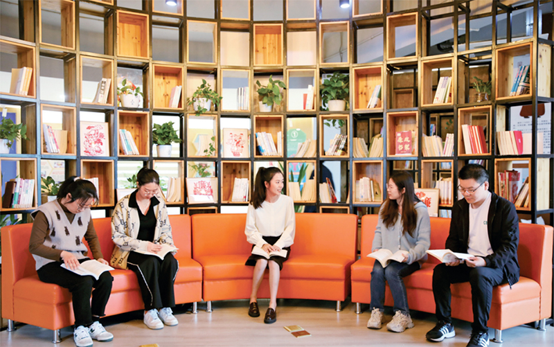 圖為2024年2月,浙江省臺州市天臺縣平橋鎮的年輕黨員圍繞學習習近平總書記關于黨的自我革命的重要思想,在“清廉書吧”開展“赤心談”研討活動,談感悟、話體會。 全國黨建研究會供圖