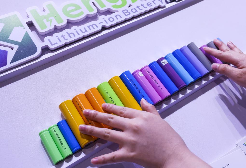 參展商在第135屆廣交會新能源展區布置鋰電池展品(2024年4月15日攝)。
