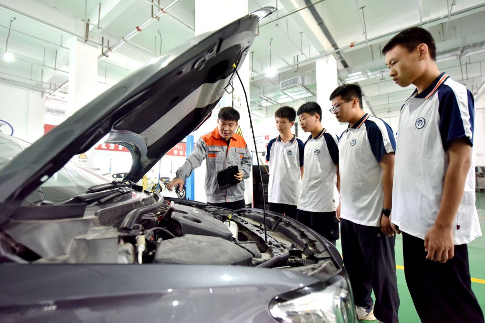 2024年6月7日,河北省邢臺市威縣職業技術教育中心教師在指導學生學習汽車維修技術。