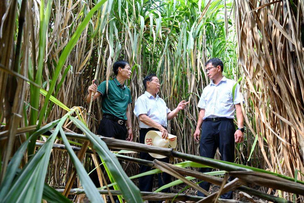 圖為2024年8月28日,林占熺(中)和菌草研究團隊成員在福建省福州市永泰縣查看菌草的生長情況。