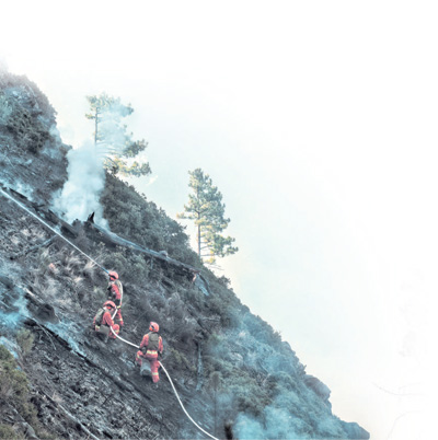 “跟我走!”帶領(lǐng)黨員突擊隊,謝孳向背起二三十公斤的滅火裝備就往里沖。他們負(fù)重沖刺爬坡近800米,荊棘叢生沒有路,就用身體壓過去。80多度的陡坡,謝孳向拽著水帶就往下跳,追著火頭跑,“那時候沒時間想個人安危的問題,只想快速安全地把火滅了。”一個半小時的搶攻戰(zhàn)贏了,突擊隊員個個渾身濕透。