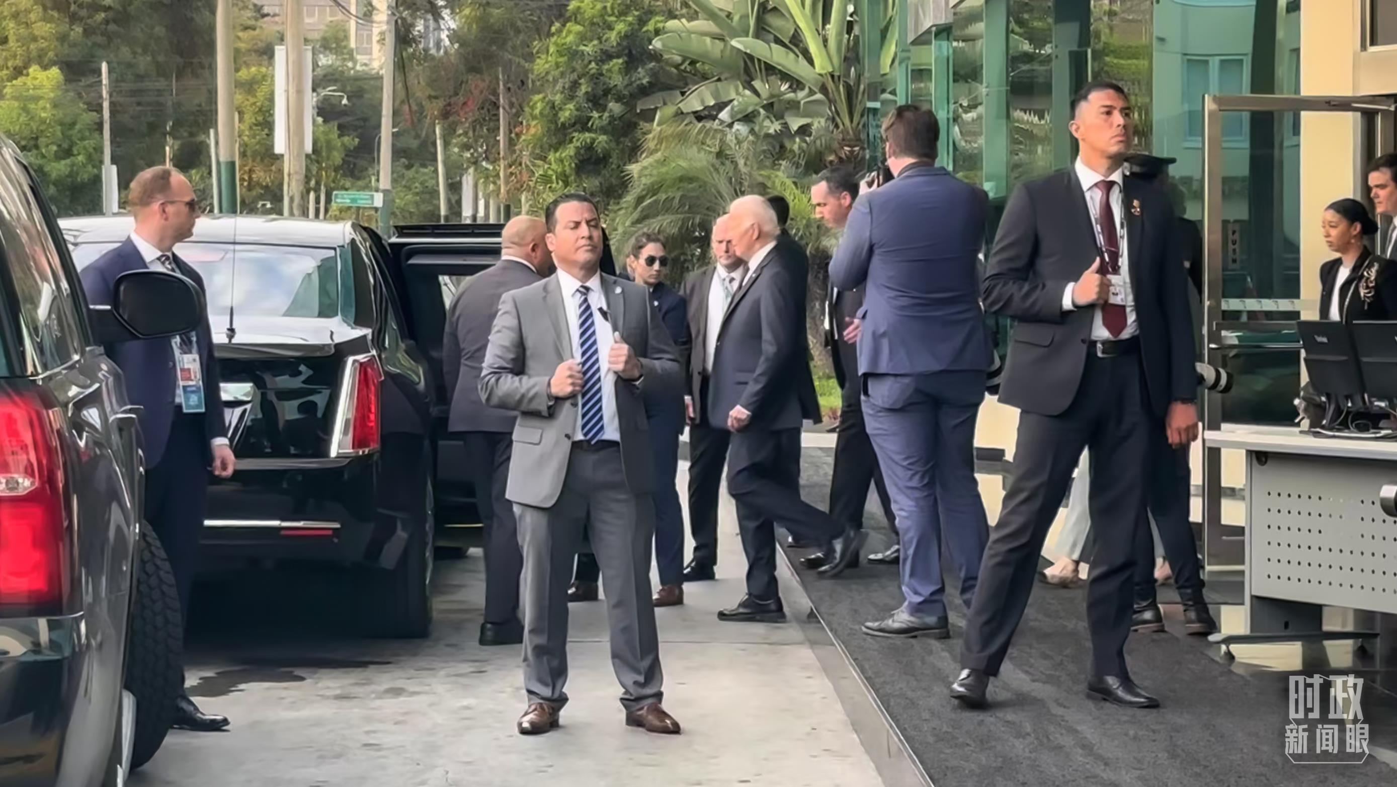 △美國總統拜登乘車抵達會晤現場。
