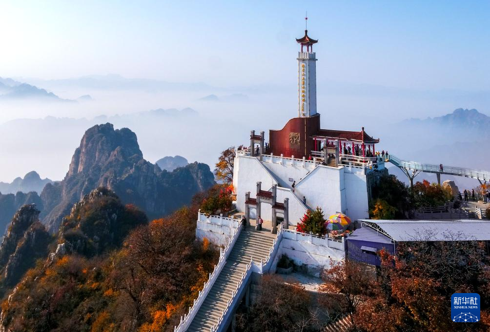 這是狼牙山棋盤陀峰頂的“狼牙山五勇士紀念塔”(2017年10月27日攝,無人機照片)。